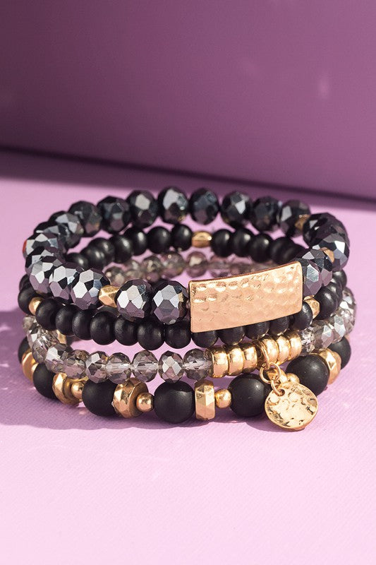 BLACK GLASS BEAD STRETCH BRACELET